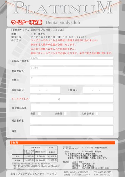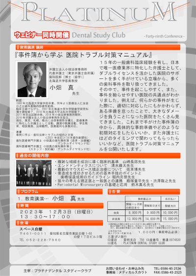 15年の一般歯科臨床経験を有し、日本で唯一医療業界に特化した弁護士として、ダブルライセンスを活かした医院のサポートを多く手がけている立場から、これまで多くの歯科事件を取り扱ってきました。その中で、事件を起こしやすく、また、事件を拗らせやすい医院の共通点がわかりました。例えば、何らかの事件が生じた際に、適切に対応したにもかかわらず、ある準備を怠ったことで、大きなダメージを負うことになった医院をたくさん見てきました。 これまで手がけた事件簿の中から、具体的な事前準備やどのような初期対応をしたらいいか、また弁護士にはどのタイミングで関わってもらったらいいかなど、整理して、医院トラブル対策マニュアルをお話いたします。 |